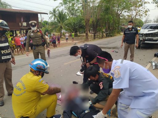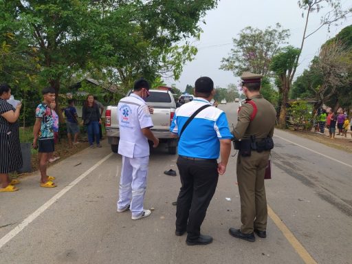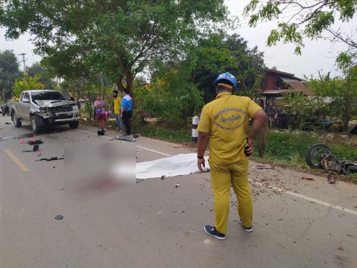 หนุ่มขับ จยย.ล้มชนรถกระบะเสียชีวิตคาที่