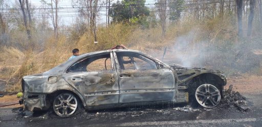 เมื่อเวลา 11:30 น. วันที่ 19 มี.ค.2566 พ.ต.ต.วัฒนะ สมยาภักดี สว.(สอบสวน) สภ.บ้านแยง อ.นครไทย จ.พิษณุโลก รับแจ้งมีเหตุรถยนต์เก๋งไฟไหม้บนถนนสายพิษณุโลก – หล่มสัก บริเวณหลัก กม.ที่ 302 ก่อนถึงทางเข้าน้ำตกแก่งโสภา ประมาณ 50 เมตร หมู่ 1 ต.บ้านแยง ไปตรวจสอบพร้อมประสานขอรถน้ำดับเพลิงของเทศบาลตำบลบ้านแยงและเจ้าหน้าที่หน่วยกู้ภัยบูรพาไปช่วยดับไฟและให้การช่วยเหลือ พบไฟกำลังลุกไหม้รถยนต์เก๋งยี่ห้อเบนซ์สีเทา หมายเลขทะเบียน 6 กศ 6619 กรุงเทพมหานคร อยู่ริมถนน เจ้าหน้าที่จึงช่วยกันฉีดน้ำดับไฟโดยใช้เวลาประมาณ 10 นาที โดยไม่มีผู้ใดได้รับบาดเจ็บหรือเสียชีวิต