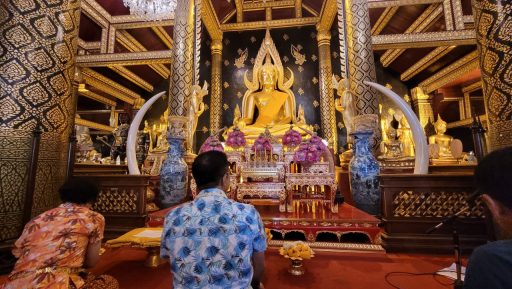 ทำบุญตักบาตรปล่อยปลาถวายห่มผ้าพระพุทธชินราช
