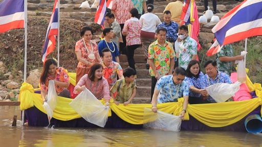 จากนั้น ผวจ.พิษณุโลก และประชาชนได้ร่วมกันปล่อยพันธุ์ปลาจำนวนกว่า 100,000 ตัวลงสู่แม่น้ำน่าน หน้าวัดพระศรีรัตนมหาธาตุวรมหาวิหาร หรือวัดใหญ่ และร่วมกันถวายผ้าห่มพระพุทธชินราช ภายในวิหารหลวงของวัด และสรงน้ำพระพุทธชินราชจำลองรวมทั้งพระบรมสารีริกธาตุ บริเวณด้านหน้าวิหารหลวง ที่ทางวัดนำมาประดิษฐานไว้ให้ ตามประเพณี ที่สืบทอดกันมากันอย่างยาวนาน เพื่อความเป็นสิริมงคล และเริ่มไปเล่นน้ำสงกรานต์กันต่อไป