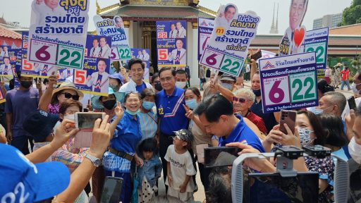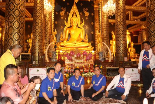 เมื่อเวลา 10.15 น. วันที่ 23 เมษายน 2566 ที่วัดพระศรีรัตนมหาธาตุ วรมหาวิหาร ต.ในเมือง อ.เมือง จ.พิษณุโลก พล.อ.ประยุทธ จันทร์โอชา รักษาการนายกรัฐมนตรี ในฐานะแคนดิเดตนายกรัฐมนตรี ของพรรครวมไทยสร้างชาติ นายพีระพันธุ์ สาลีรัฐวิภาค หัวหน้าพรรคฯ นายจุติ ไกรฤกษ์ และนายหิมาลัย ผิวพรรณ หรือ เสธ หิ ได้เดินทางไปกราบสักการะขอพรพระพุทธชินราช โดยทันทีที่รถยนต์อัลพาร์ตสีดำ ทะเบียน 1 ขศ 87 กทม. มาจอดที่ประตูด้านหน้าวิหารหลวง แฟนคลับของลุงตู่ที่มารอรับต่างตรงเข้าไปให้การต้อนรับทันทีที่ลุงตู่ก้าวลงจากรถ ต่างตะโกนส่งเสียงเชียร์ ลุงตู่สู้ ๆ ลุงตู่อยู่ต่อ โดย พล.อ.ประยุทธ์ ได้ทักทายแฟนคลับอย่างเป็นกันเองและถ่ายรูปคู่กับแฟนคลับด้วย ก่อนที่จะเข้าไปกราบไหว้ขอพรพระพุทธชินราช ภายในวิหารหลวง และถ่ายภาพร่วมกับผู้สมัคร ส.ส.พิษณุโลก ทั้ง 5 เขตเลือกตั้ง โดยมีประชาชนจำนวนมากที่มาท่องเที่ยวกำลังกราบไหว้สักการะพระพุทธชินราชอยู่ ได้ขอถ่ายรูปคู่กับลุงตู่ด้วยมีทั้งเด็กและเยาวชนคนรุ่นใหม่