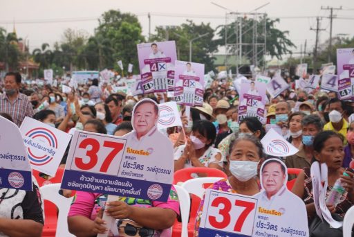 เมื่อเวลา 17.00 น. วันที่ 8 พ.ค.2566 ผู้สื่อข่าวรายงานมาว่า ที่ลานอเนกประสงค์ธนาคารออมสิน ต.พรหมพิราม อ.พรหมพิราม จ.พิษณุโลก พลเอกประวิตร วงษ์สุวรรณ หน.พรรคพลังประชารัฐ พร้อมด้วย นายชัยวุฒิ ธนาคมนุสรณ์ รองหัวหน้าพรรค นายสันติ พร้อมพัฒน์ เลขาธิการพรรค ร.อ.ธรรมนัส พรหมเผ่า ประธานยุทธศาสตร์ภาคเหนือ และ นายวราเทพ รัตนากร คณะทำงานยุทธศาสตร์พร้อมแกนนำพรรค ได้เดินทางไปขอคะแนนเสียงให้กับพรรคเบอร์ 37 และช่วยหาเสียงให้กับ นายศิริชิน หาญพิทักษ์พงศ์ เบอร์ 4 ผู้สมัคร ส.ส.พิษณุโลก เขต 2 โดยมี นายอดุลวิทย์ วิวัฒน์ธนาฒย์ เบอร์ 11 เขต 1 นายหัสนัยน์ สอนสิทธิ์ เขต 3 เบอร์ 7 นายอัศวิน นิลเต่า เขต 4 เบอร์ 7 และนายเอกพงษ์ กุลเจริญ เขต 5 เบอร์ 1 ร่วมในการปราศรัยด้วย และมีประชาชนมาร่วมฟังกว่า 5,000 คน