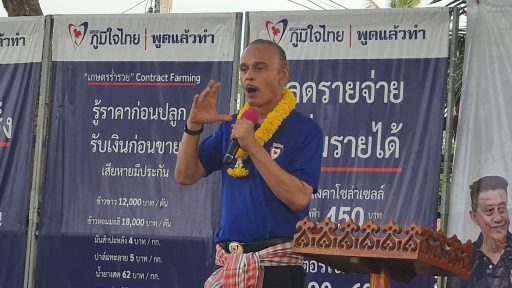“ผมไม่อยากพูด หัวหน้าพรรคบางคน คลิปก็มี เคยพูดกัญชาดี กัญชาวิเศษ ตัวผมเคยเป็นโรคลมชักเคยใช้กัญชา แต่เวลาที่พรรคภูมิใจไทยทำ ตอนนี้ออกมาตีกัญชา มีบางคนรับเงินจากบริษัทยามาก็มาตีกัญชา หัวหน้าพรรคบางคนบอกไม่เอากัญชา ทั้งที่เมื่อปีที่แล้วยังยกมือลงคะแนนให้กัญชาออกจากบัญชียาเสพติด ไปเห็นแอพพลิเคชั่นหนึ่ง มีคนล้านคนเกิดหวั่นไหว ก็มาโจมตีพรรคภูมิใจไทย ท่านจะเลือกท่านต้องเลือกดูด้วยใครโกหกใครพูดจริง มีระบบคนกดไลฟ์ให้เป็นหมื่นเป็นแสน ผมบอกว่าท่านต้องใช้ความคิดพิจารณา ผมไม่เข้าใจการเมืองเมืองไทยยุคนี้ โกหกกันหน้าด้าน ๆ วันหนึ่งพูดอย่างนี้วันนี้พูดอีกอย่าง พรรคภูมิใจไทยเราพูดแล้วทำ เพราะเราทำอะไรไว้ เราทำอะไรได้ไม่ได้ เราบอกชัดเจน ไม่พูดเพื่อหาเสียง เพื่อให้ประชาชนพิจารณา เลือกพรรคเป็นความรักความชอบของท่าน ถ้าเห็นว่าพรรคเราดีให้เลือกเบอร์ 7 แต่ขอให้เลือกพรรคที่เสนอแคนนิเดตนายกแค่คนเดียว พรรคที่เสนอ 3 คนประชาชนมีสิทธิ์เพียงแค่เลือกพรรค แต่ไม่ใช่เลือกนายกฯ ประชาชนทำได้เพียงแค่นำเสนอ ส่วนใครจะได้เป็นนายกฯ ก็ขึ้นอยู่กับการคัดเลือกของกรรมการบริหารพรรคนั้น
