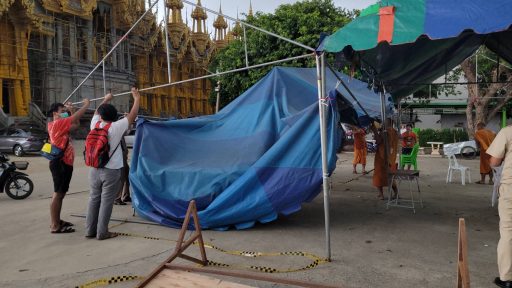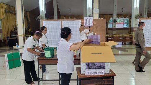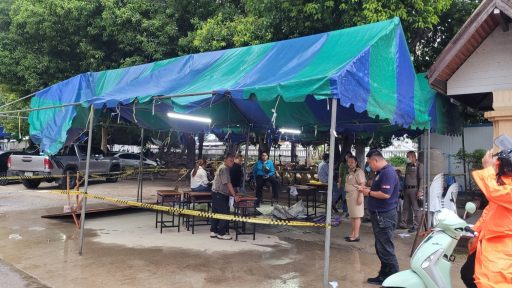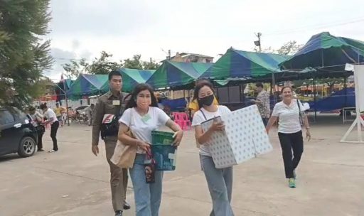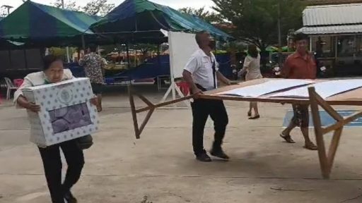 ลมพายุพัดเต็นท์นับคะแนนพังย้ายเข้าไปนับในศาลาวัด