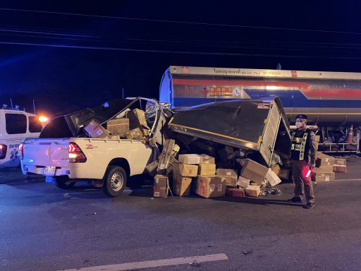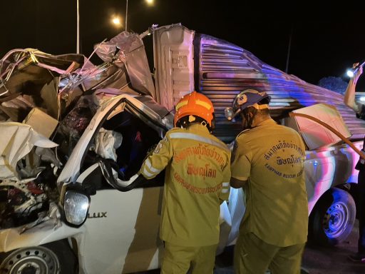 เมื่อเวลา 01.00 น. วันที่ 26 พ.ค.2566 ร.ต.ท.วงศกร เย็นขัน รอง สว.(สอบสวน) สภ.เมืองพิษณุโลก รับแจ้งมีเหตุรถยนต์กระบะชนรถเทเลอร์บนถนนสายพิษณุโลก – อุตรดิตถ์ ตรงข้ามหน่วยบริการประชาชนตำรวจทางหลวง ต.บ้านป่า บริเวณหลัก กม.237+500 ทำให้มีผู้บาดเจ็บติดอยู่ภายใน ไปตรวจสอบพร้อมด้วยเจ้าหน้าที่สมาคมกู้ภัยข่าวภาพพิษณุโลก พบรถยนต์กระบะโตโยต้า ทะเบียน บล-7115 สุรินทร์ ชนอัดก็อปปี้อยู่กับท้ายรถเทเลอร์บรรทุกน้ำมันยี่ห้อวอลโว่ ทะเบียน73-3001 ชลบุรี ที่จอดอยู่ริมถนนฝั่งขาเข้าเมืองพิษณุโลก สภาพหน้ารถพังยับเยินหลังคาท้ายกระบะหลุดทำให้กล่องพัสดุตกกระจายเกลื่อนพื้นถนน โดยมีเจ้าหน้าที่ตำรวจทางหลวง ส.ทล.3 กก.5 บก.ทล. อำนวยความสะดวกด้านการจราจรอยู่