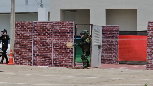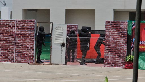 จากนั้นเป็นการสาธิตของชุดอาวุธพิเศษ (S.W.A.T) ตำรวจภูธรจังหวัดพิษณุโลก โดยมีการจำลองเหตุการณ์คนร้ายก่อเหตุชิงทองและใช้อาวุธปืนยิงพนักงานร้านทองเสียชีวิต ก่อนที่จะหลบหนีไปอยู่ในบ้านพักแห่งหนึ่ง เจ้าหน้าที่ตำรวจได้ติดตามไปปิดล้อมและประกาศให้คนร้ายมอบตัว แต่คนร้ายใช้อาวุธปืนยิงหลายนัดและตอบกลับว่าพร้อมสู้ตาย รวมทั้งขู่ว่ามีระเบิดที่พร้อมจะสังหารเจ้าหน้าที่หากจู่โจมเข้ามาในบ้านดังกล่าว เจ้าหน้าที่ตำรวจชุดอาวุธพิเศษ (S.W.A.T) ซึ่งได้รับคำสั่งให้เข้าไประงับ ได้นำกำลังเข้าไปประชิดบ้านที่คนร้ายแอบซ่อนอยู่ ก่อนติดตั้งเฟรมชาร์จที่ประตูบ้านเพื่อระเบิดเป็นการเปิดทางเข้าไปและวิสามัญคนร้ายเป็นผลสำเร็จ และถอนกำลังออกมาเพื่อให้ชุดบอมส์สูทของ EOD เข้าเก็บกู้วัตถุระเบิด นำออกจากบ้านมาไว้ในที่ห่างไกลจากประชาชน ก่อนใช้ปืนฉีดน้ำแรงดันสูงทำลายวัตถุระเบิด ตามยุทธวิธีในการเข้าควบคุมสถานการณ์ของชุดอาวุธพิเศษ