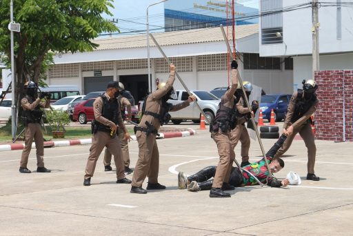 พล.ต.ต.วรวัฒน์ มะลิ รอง ผบช.ภ.6 ในฐานะโฆษกตำรวจภูธรภาค 6 เปิดเผยว่า ตำรวจภูธรจังหวัดพิษณุโลก ได้ทำการฝึกทบทวนและเสริมประสิทธิภาพ ในการปฏิบัติหน้าที่ เนื่องจากปัจจุบันเกิดสถานการณ์คนคลุ้มคลั่งมากขึ้น วันนี้เป็นการโชว์ฝึกยุทธวิธีการระงับเหตุด้วยไม้ง่ามและการสาธิตการเข้าควบคุมสถานการณ์ของชุดอาวุธพิเศษ (S.W.A.T) โดยได้จำลองเหตุการณ์เป็นเหตุบุคคลคลุ้มคลั่งทั้งมีอาวุธและไม่มีอาวุธ โดยเจ้าหน้าที่ตำรวจ เจ้าหน้าที่เทศกิจและผู้นำชุมชนในพื้นที่ สามารถเข้าควบคุมตามยุทธวิธีที่ทำการฝึกมาด้วยไม้ง่ามได้เป็นอย่างดี รวมทั้งและเหตุการณ์จำลองเกิดเหตุคนร้ายปล้นร้านทองยิงพนักงานเสียชีวิต หลบหนีเข้าบ้านพักประกาศสู้ตายไม่ยอมมอบตัวพร้อมวัตถุระเบิดภายในบ้าน ซึ่งเราส่งชุดควบคุมสถานการณ์ของชุดอาวุธพิเศษเข้าระงับเหตุ มีการสาธิตการระเบิดประตูบ้าน และการเก็บกู้ทำลายวัตถุระเบิดตามยุทธวิธีที่ได้รับการฝึกอบรมมา