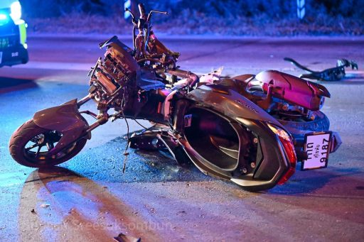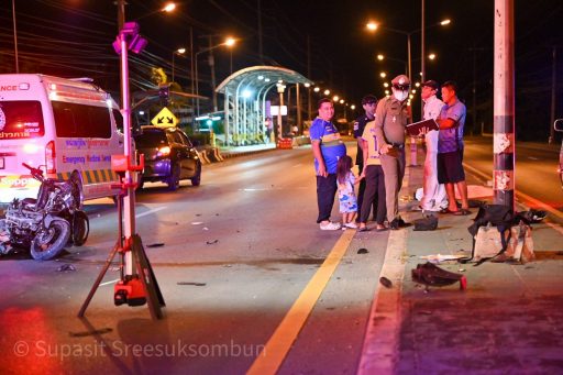 หนุ่มสุโขทัยชนเสาไฟส่องสว่างกลางถนนดับสลด