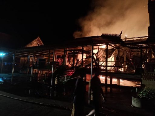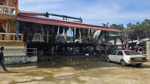 ไฟไหม้ศาลาและกุฏิพระ 10 หลังที่วัดคลองวัดไร่กลางดึก