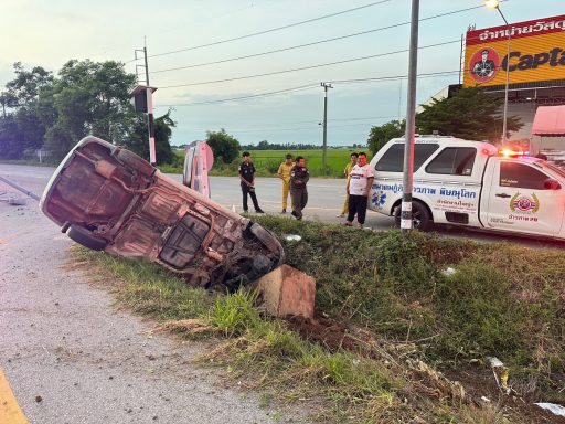 เมื่อเวลา 05.30 น. วันที่ 10 ก.ค.2566 พ.ต.ต.ศิริพงษ์ เงื่องจันทอง สว.(สอบสวน) สภ.เมืองพิษณุโลก รับแจ้งมีรถยนต์เก๋งเสียหลักตกร่องเกาะกลางถนนชนเสาไฟฟ้าส่องสว่างทำให้คนขับเสียชีวิตบริเวณถนนสายเลี่ยงเมืองสี่แยกหนองอ้อ – อินโดจีน หมู่ที่ 1 ต.ท่าโพธิ์ ไปตรวจสอบพร้อมด้วยแพทย์เวร รพ.มหาวิทยาลัยนเรศวร และเจ้าหน้าที่สมาคมกู้ภัยข่าวภาพ พิษณุโลก พบรถยนต์เก๋งยี่ห้อฮอนด้า CITY ZX สีบรอนซ์ทะเบียน ขฐ 4602 กรุงเทพมหานคร พลิกคว่ำตะแคงสภาพหน้ารถอัดอยู่กับเสาไฟฟ้าส่องสว่างที่โดนชนจนโค่นล้มอยู่ในร่องเกาะกลางถนน และมีร่างผู้เสียชีวิตอยู่บริเวณเบาะที่นั่งคนขับที่คาดเข็มขัดนิรภัยไว้ บริเวณจุดยูเทิร์นใกล้เคียงกับวิทยาลัยเทคนิคสองแคว ตำรวจจึงประสานรถยกดึงซากรถที่เกิดเหตุขึ้นมาบนถนน ก่อนให้เจ้าหน้าที่กู้ภัยนำร่างผู้เสียชีวิตออกมาชันสูตร ทราบชื่อต่อมาคือ นายสิรภพ ดุรงค์ อายุ 23 ปี อยู่บ้านเลขที่ 79 หมู่ที่ 5 ต.ป่าเซ่า อ.เมือง จ.อุตรดิตถ์ สภาพศพสวมเสื้อยืดคอกลมแขนสั้นสีน้ำเงินกางเกงขาสั้นสีดำมีบาดแผลฉกรรจ์ที่ตาและหน้าผากด้านซ้าย กะโหลกศีรษะแตก