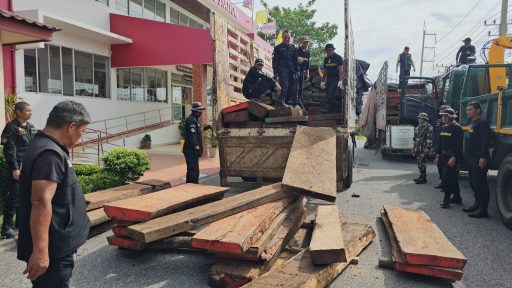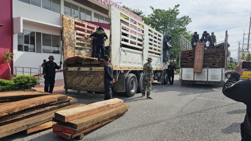 ตำรวจทางหลวงสนธิกำลังกับชุดพญาเสือและพยัคฆ์ไพร จับรถหกล้อ 2 คัน ซุกไม้ประดู่เถื่อนกว่า 240 แผ่น บนถนนทางหลวงหมายเลข 12 คนขับสารภาพรับจ้างขับคันละ 5 หมื่น จาก อ.ม่อนแจ่ม จ.เชียงใหม่ มุ่งหน้าส่งให้ลูกค้าที่ จ.หนองคาย มูลค่าไม้คันละ 2 ล้านบาท รวม 4 ล้านบาท ประมาณ 34 ลบ.ม. คาดเตรียมส่งต่อออกนอกประเทศ