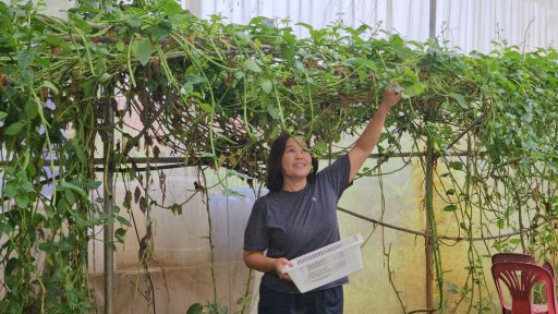 ตนจึงคิดว่าจะทำอย่างไรดี ให้ลูกบ้านมีสุขภาพดีขึ้น เลยลองชวนลูกบ้านมาปลูกผักอินทรีย์ ทำปุ๋ยหมักเอง แต่ยังไม่มีใครสนใจ จึงลองเริ่มจากการปลูกเอง และเลิกขายปุ๋ย เราอยากทำให้เขาดู ชักจูงให้เขาเห็น แล้วก็รวมกลุ่มกันปลูกผักอินทรีย์ ช่วงแรกเจอปัญหาเรื่องหนอน เป็นโรคบ้าง ก็คิดว่าเราท้อไม่ได้ จากนั้นไปศึกษาหาความรู้ จนทำได้ และมาสอนชาวบ้าน ต่อมาตั้งกลุ่มไลน์ขายผัก ลูกค้าก็จะดึงคนรู้จักเข้ากลุ่มเรื่อยๆ จนวันหนึ่งเราขายผักได้แล้ว ก็อยากเพิ่มมูลค่าของผัก โชคดีที่ในตำบลบ้านกร่างของเรา มีมหาวิทยาลัยเทคโนโลยีราชมงคลล้านนา ก็เดินไปขอความช่วยเหลือ ให้เขาช่วยคิดค้นสูตรและทำวิจัยให้ จนปรึกษากันในที่สุดเลือกผักปลัง เพราะว่าเป็นผักพื้นถิ่น เมื่อก่อนขึ้นตามรั้ว แต่ไม่มีใครสนใจ และใกล้จะสูญหาย ก็เลยนำผักปลังมาแปรรูป โดยผักปลังมีประโยชน์มาก มีสารประกอบฟีนอลิก แคโรทีนอยด์ กรดไขมัน สารเมือก กรดอะมิโน สามารถขับปัสสาวะ ลดความเสี่ยงโรคเบาหวาน จึงนำมาเป็นวัตถุดิบหลักเพื่อพัฒนาเป็นบะหมี่ผักปลังอบแห้ง