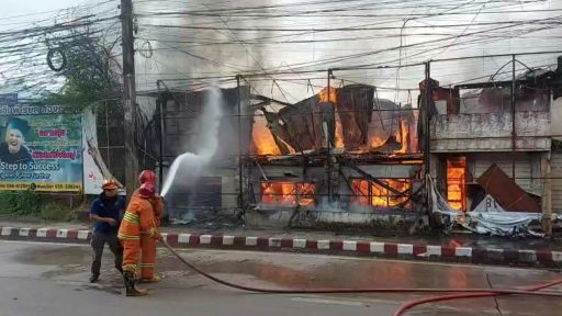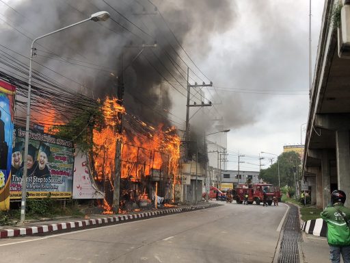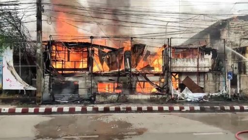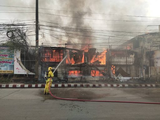 ระทึกไฟไหม้บ้านกลางเมืองตรงข้ามห้างท็อปแลนด์พลาซ่า