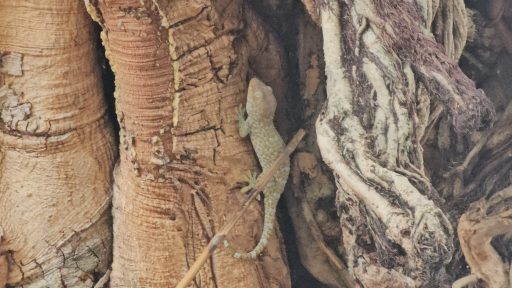 นายเป้ (ฉายาหนุ่มผมยาว) เจ้าหน้าที่ของวัดที่มาเปิดบูธนวดน้ำมันแก้เส้นยึดเส้นจมอยู่บริเวณใต้ต้นโพธิ์ บอกว่า ต๊าวตุ๊กแก ตัวนี้อาศัยอยู่ในวัดมานานแล้ว มักจะเดินไปเดินมาอยู่ตามต้นโพธิ์ภายในวัด ลักษณะตัวโตอ้วนท้วนสมบูรณ์ดี ลำตัวจากหัวจรดหางยาวเกือบ 10 นิ้ว สีพื้นลำตัวเป็นสีฟ้าออกเทา ๆ พาสเทล จุดตามลำตัวสีส้มลวดลายแปลกตาต่างจากตุ๊กแกที่เคยพบเห็นบ่อย ๆ ปกติจะอาศัยอยู่ในโพรงต้นศรีมหาโพธิ์ มักจะโพล่ออกมาแต่หัว แรก ๆ ที่เห็นก็กลัวว่านักท่องเที่ยวจะกลัว ตนก็จะเอาไม้ค้ำต้นโพธิ์ไปเคาะเหมือนไล่ แต่พอต๊าวตุ๊กแกได้เห็นปลายไม้ หรือได้ยินเสียงเคาะ เขาก็จะมุดออกมาโชว์ตัว ตนเลยลองเอาปลายไม้เขี่ย ๆ หลัง ก็จะอยู่นิ่ง ๆ เหมือนเขาเพลินที่เราเกาหลังให้ บางทีเขาก็จะกลับตัวเปลี่ยนมุมซ้ายขวาให้เราเกา เหมือนเขาฟินมาก จากนั้นก็เลยสนิทกันไปเลย ทุกเช้าที่ตนตั้งร้านนวดน้ำมันเสร็จ ก็จะแวะมาเกาหลังให้ทุกวัน นี่ก็ร่วมเดือนแล้ว นักท่องเที่ยวที่มาพบเห็น คนที่ไม่กลัวตุ๊กแก เขาก็จะลองใช้ไม้เกาให้บ้าง ตนก็จะคอยบอกว่าต้องทำยังไง บ้างก็ถ่ายรูปเอาไปโพสโซเชียลกันเพราะไม่ค่อยได้พบเห็นบ่อย ๆ