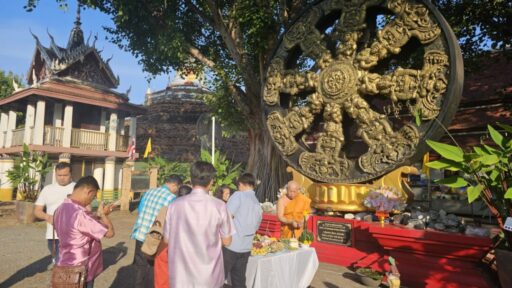 ซึ่งบรรยากาศงานช่วงเช้าวันนี้ พระครูสิทธิธรรมวิภัช เจ้าอาวาสวัดราชบูรณะพร้อมคณะ ได้ประกอบพิธีบวงสรวงหน้าธรรมจักรขนาดใหญ่ใต้ต้นโพธิ์ใกล้กับเจดีย์หลวง ก่อนที่ นายฐานุพงศ์ เจริญสุรภิรมย์ อดีตรอง ผวจ.พิษณุโลก พร้อมพุทธศาสนิกชนจะร่วมกันแห่กฐินรอบวิหารหลวงพ่อทองดำจำนวน 3 รอบ แล้วนำขึ้นไปประกอบพิธีบนศาลาการเปรียญ