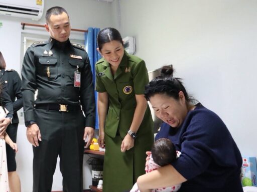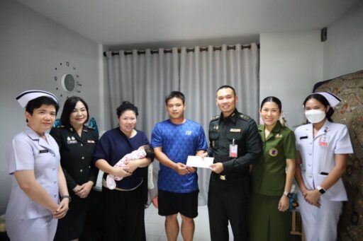 ผู้อำนวยการโรงพยาบาลค่ายกาวิละ พร้อมประธานสมาคมแม่บ้านทหารบก สาขาโรงพยาบาลค่ายกาวิละ เยี่ยมบุตรแรกเกิดของกำลังพล โรงพยาบาลค่ายกาวิละที่เชียงใหม่