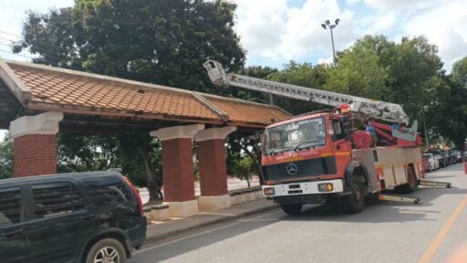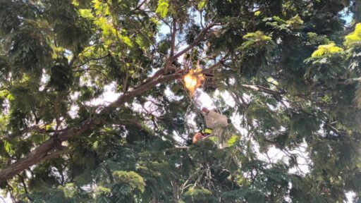 ผึ้งหลวงหน้าโรงเรียนเฉลิมขวัญสตรี บินลงมาต่อยแม่ค้าอีกแล้ว หลังโดนกำจัดรังไป 1 รอบ เมื่อวันจันทร์ที่ผ่านมา คราวนี้กลับมาทำรังที่เดิม เจ้าหน้าที่ฝ่ายงานป้องกันเทศบาลนครพิษณุโลกต้องพ่นไฟกำจัด