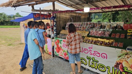สตอเบอรี่ที่นำมาปลูกเป็นพันธุ์พระราชทานเบอร์ 80 และเบอร์ 89 และการปลูกที่นี่ก็ไม่สามารถปลูกลงดินได้เลยเพราะดินบริเวณนี้เป็นดินถมใหม่ ตนต้องนำดินปลูกมาจากเชียงใหม่ เป็นดินที่ตนผสมเองจากดินร่วน ใส่ขุยมะพร้าวและขี้หมู นำมาใส่ถุงเพาะปลูกสตรอเบอรี่ และในถุงปลูกทุกต้นตนจะปลูกต้นกระเทียมไว้ด้วย กลิ่นของต้นกระเทียมจะช่วยไล่แมลงไล่เพลี้ย ทำให้ไม่ต้องใช้ยาปราบศัตรูพืช ผลผลิตที่นี่จึงเป็นผลผลิตแบบออแกนิคไร้สารพิษ นักท่องเที่ยวที่เดินเข้ามาชมและเก็บสตอเบอรี่ที่นี่ได้อย่างปลอดภัย ตนจะจำหน่ายกิโลกรัมละ 400 บาท เพราะมั่นใจในความสะอาดไร้สารพิษอย่างแน่อน ขณะนี้สตอเบอรี่กำลังติดผลและคาดว่าจะเริ่มเป็นผลใหญ่ตั้งแต่วันที่ 20 ธันวาคม 2568 เป็นต้นไป และจะสามารถเก็บผลผลิตได้ยาวต่อเนื่องไปจนถึงประมาณเดือนมีนาคม 2569