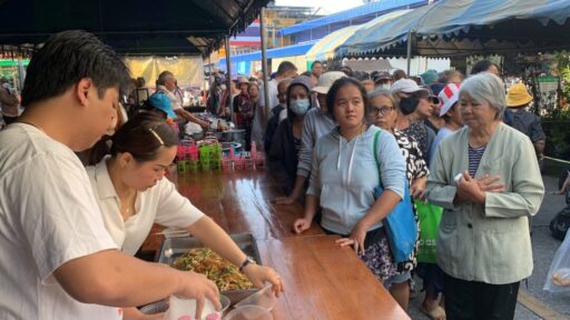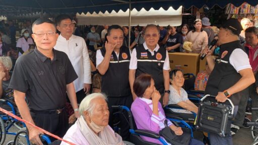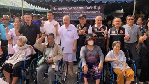 ชาวชุมชนมุขศาลา รวมใจภักดิ์ มอบวีลแชร์ พร้อมแจกถุงยังชีพแก่ผู้ยากไร้ ถวายเป็นพระราชกุศล รัชกาลที่ 9 พร้อมตั้งโรงทาน
