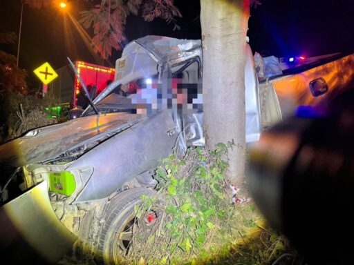 หนุ่มขายไก่ย่างซิ่งกระบะแหกโค้งชนต้นไม้ดับสลด